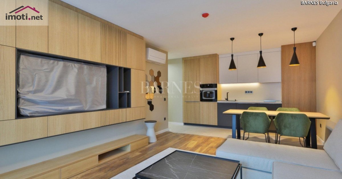 Интериорните решения са дизайнерски, с решения в светли и приятни. Имотът се предлага обзаведен с качествени материали, мебели и оборудване за нуждите на бъдещия наемател.