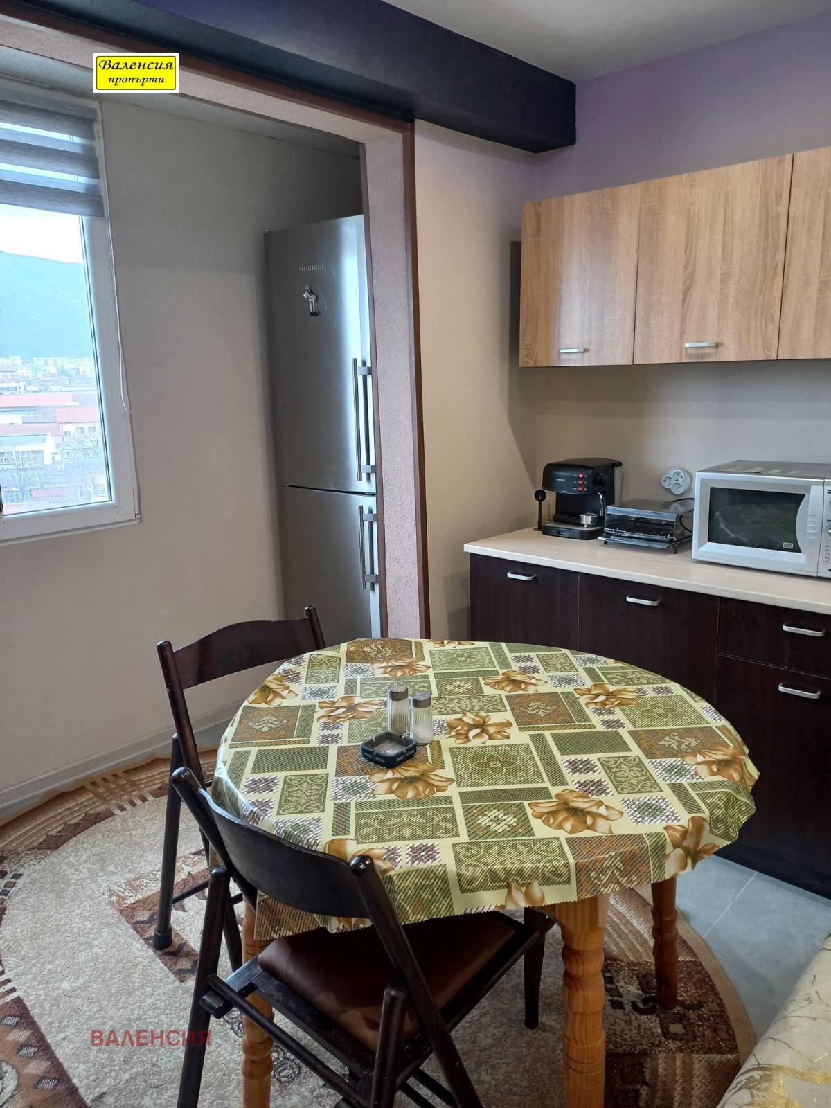 Гарсониера-южна с две тераси, едната приобщена към кухня, друга-свободна, след ремонт:стени-шпакловани, врати -подменени, прозорци-ПВЦ,подове-на гранитогрес и ламинат,отопление-на климатик,централна топла вода, при поискване може да се прикачи и централен тец,напълно обзаведен с всичко необходимо /подходяща за един или двама човека-работещи, без домашни любимци/
