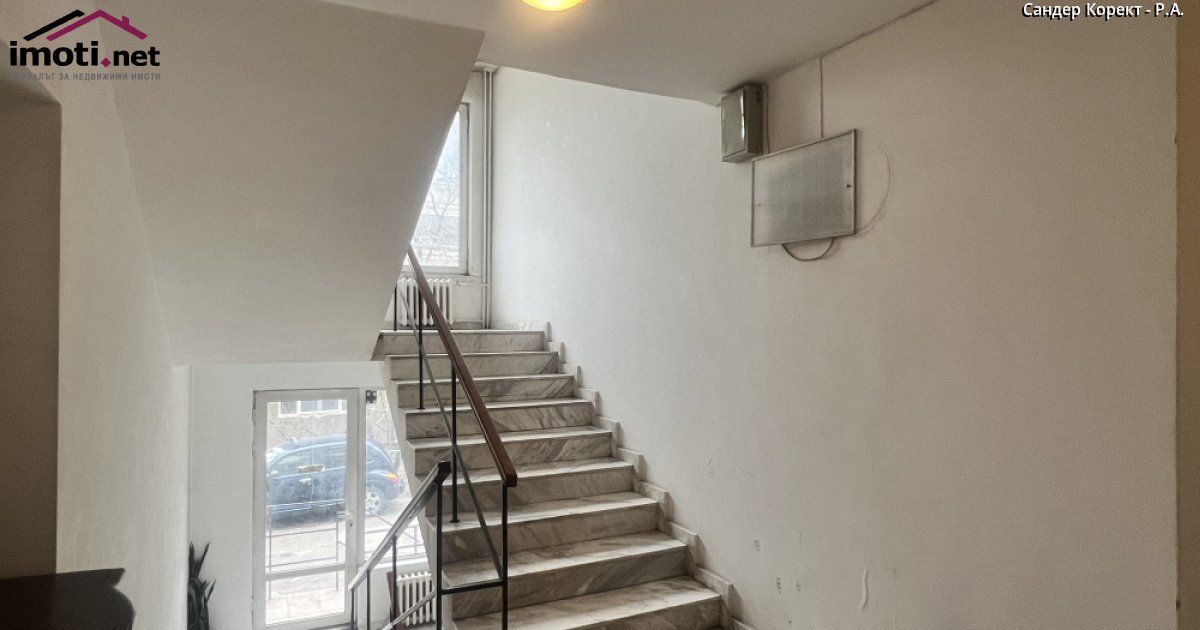 ВЪЗМОЖНОСТ ЗА ПОКУПКА НА ГОЛЯМ НАЗЕМЕН ГАРАЖ!!! Сандер Корект Ви представя за продажба двустаен апартамент, находящ се в отлично поддържана сграда солидно строителство с широки и хубави общи части с мраморни плочи, в близост до парка на Водната кула, ул.Минзухар и ул.Плачковица. Районът е тих и приятен за живеене,паркова среда, търговски обекти, детска градина, училище, добри транспортни връзки (трамвай, метро, автобус). Това е едно от елитните и предпочитани за живеене места в квартала. Застроената площ на апартамента е 56,43 кв.м.по нотариален акт, и 8,73 кв.м. ид. части от общите части на сградата. Архитектурното разпределение прави имота подходящ както за дългосрочна инвестиция, така и за лично обитаване. Изложението е юг/изток, с повече юг и с усещане за простор. Разпределението е както следва: голям коридор, наляво от него баня с тоалетна,следва голяма кухня с трапезарна част, врата към голям покрит балкон. Направо по коридора се влиза в просторна спалня от 18,24 кв.м. Спалнята има врати и към дневната част, и към голямата тераса. Разполагаме с архитектурен и конструктивен чертеж на жилището, които биха помогнали при избор на решения за преустройство, оптимизиращо жизненото пространство. Терасата е почти квадратна, може да бъде частично или напълно усвоена или остъклена. Прилежащо голямо и сухо мазе от 7,95 кв.м.и право на строеж върху дворното място. Може да се закупи и наземен гараж със застроена площ от 16,87 кв.м.на допълнителна цена от 75 000 евро. Гаражът е краен, и пред него допълнително могат да се паркират една или две коли. Огледи по всяко време, разполагаме с ключ!Телефон за контакт:Трифон Бончев 0888390674